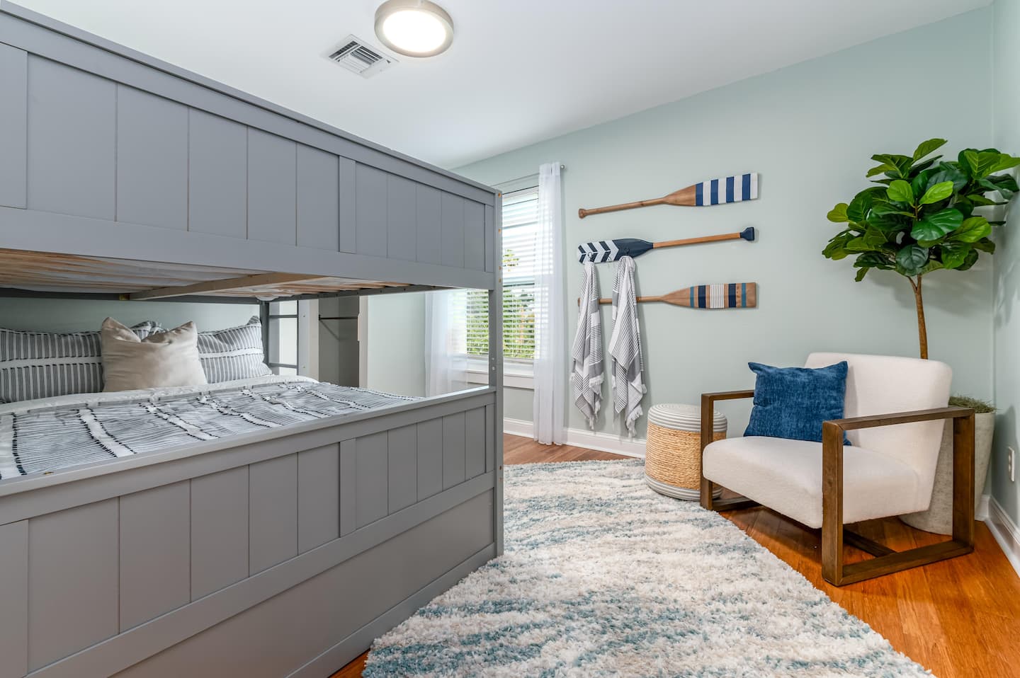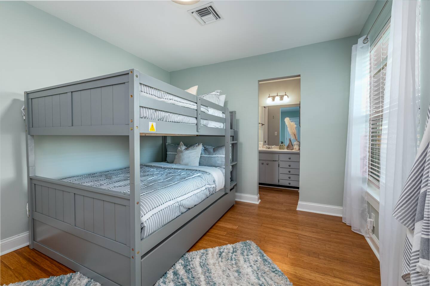 ❂ 3 bedrooms; Full-sized bunk beds with a single trundle, 2 queen beds, 1 queen bed (+ 1 air mattress)