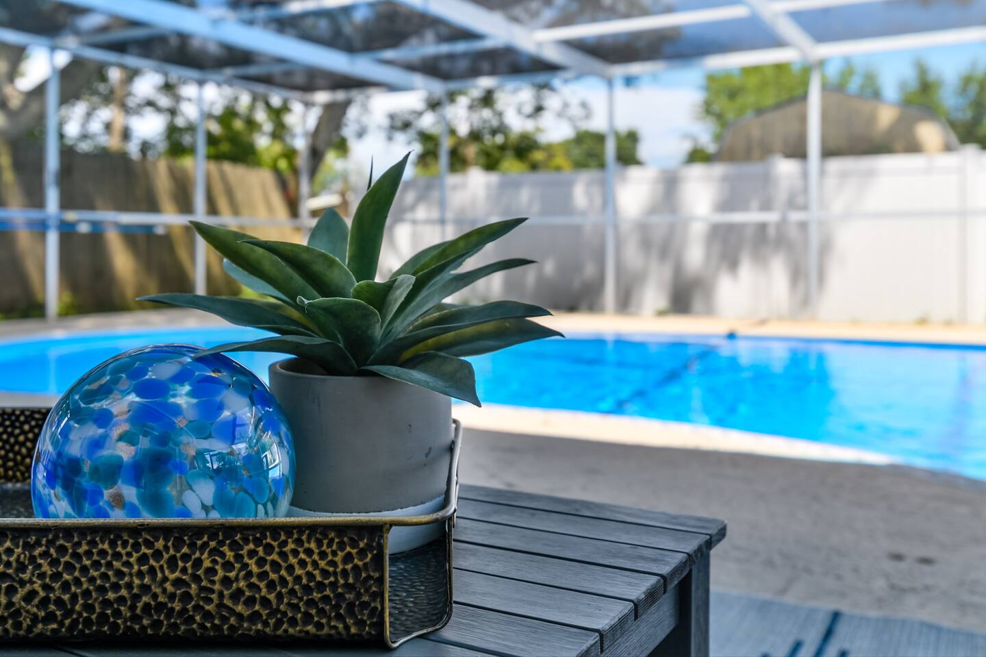 Step outside to the covered patio area, furnished with outdoor furniture for relaxation. Enjoy some leisure time on the sofa or dine at the picnic tables. The highlight of the outdoor space is the large pool, complemented by a private fenced-in yard, perfect for kids to run around or pets to play. With a private driveway, parking is hassle-free during your stay.