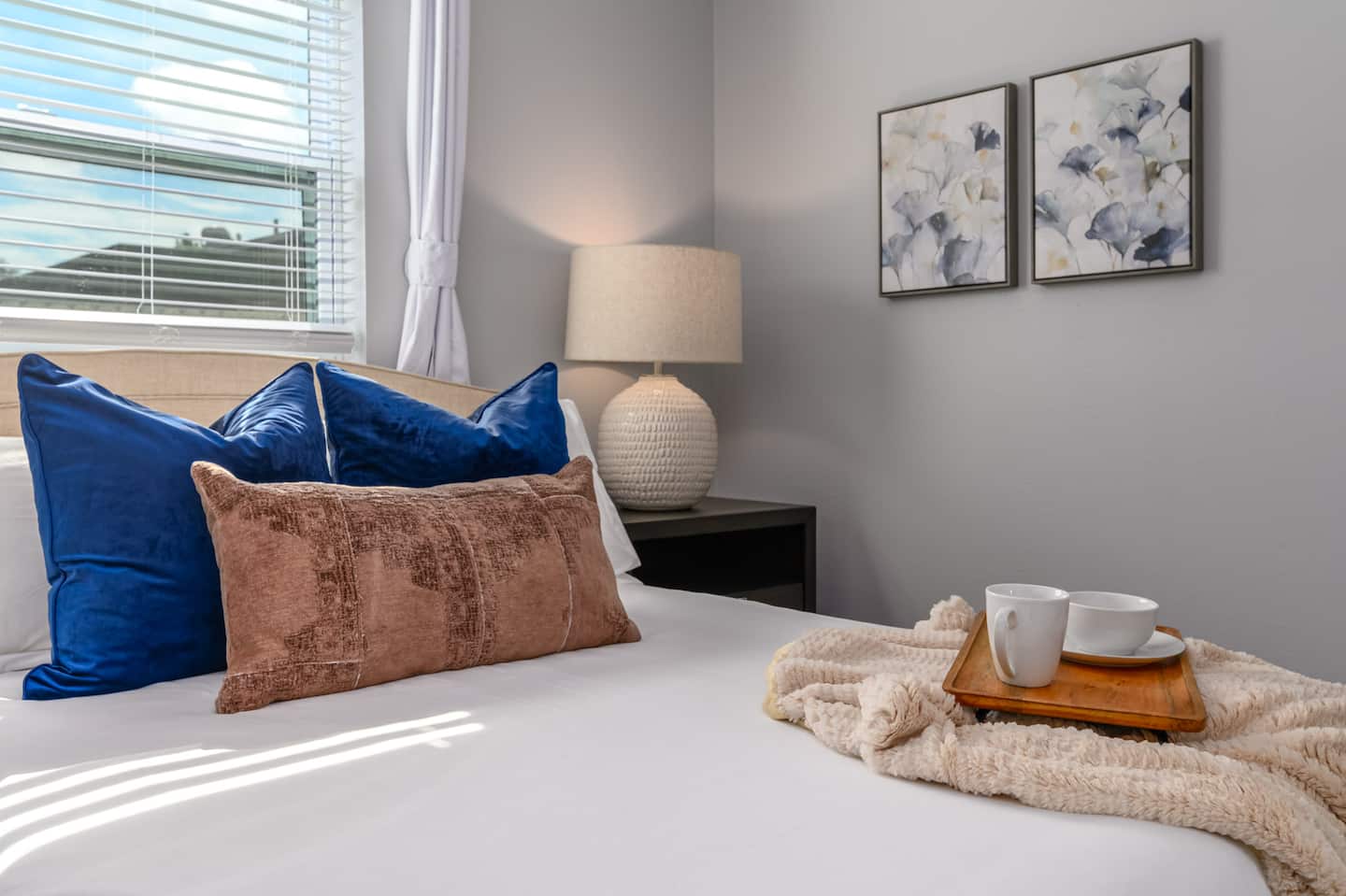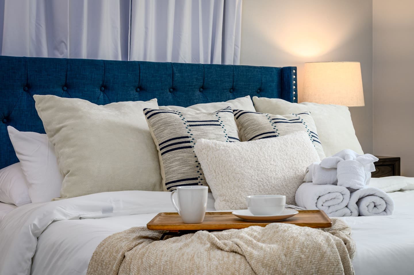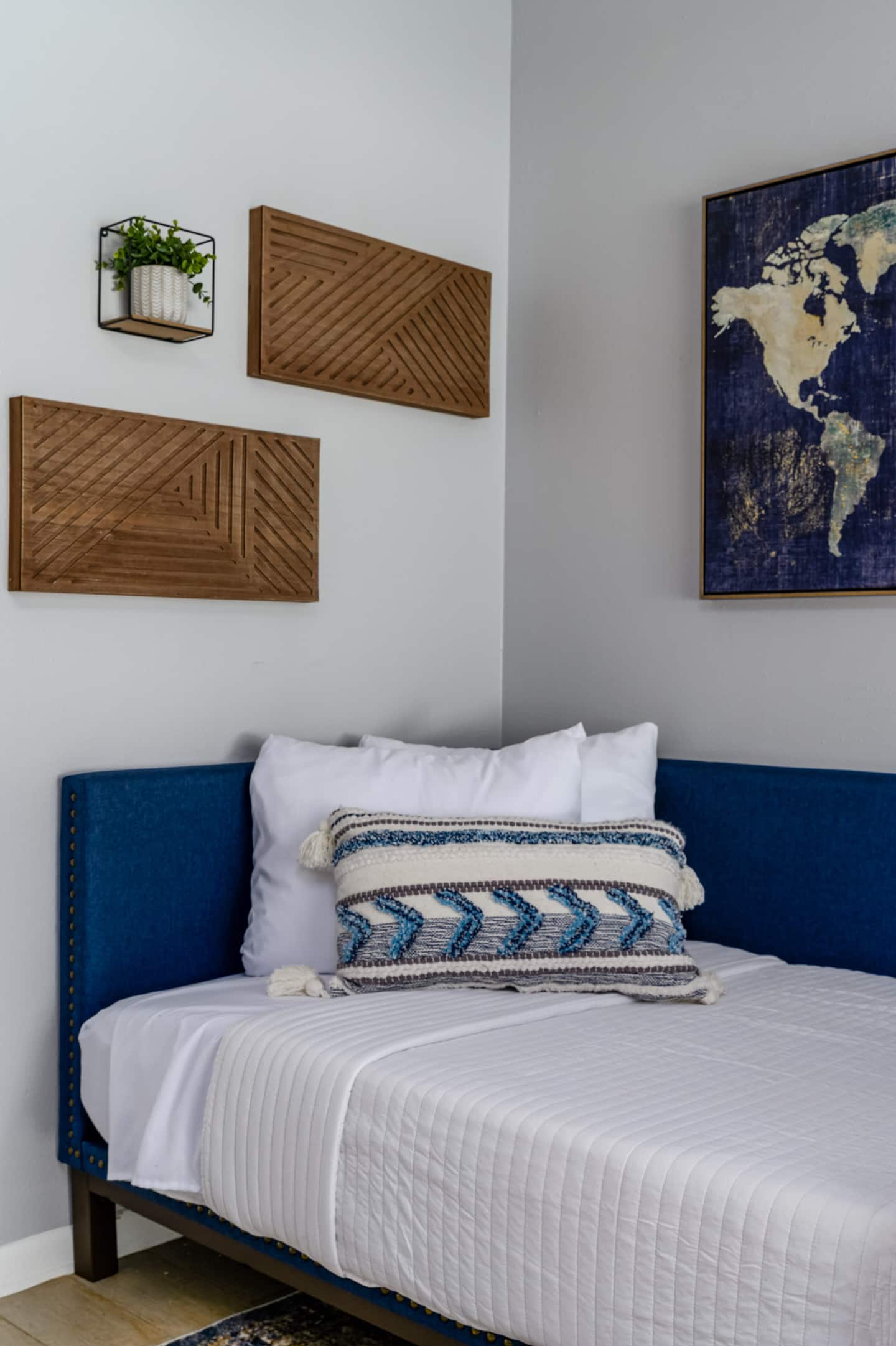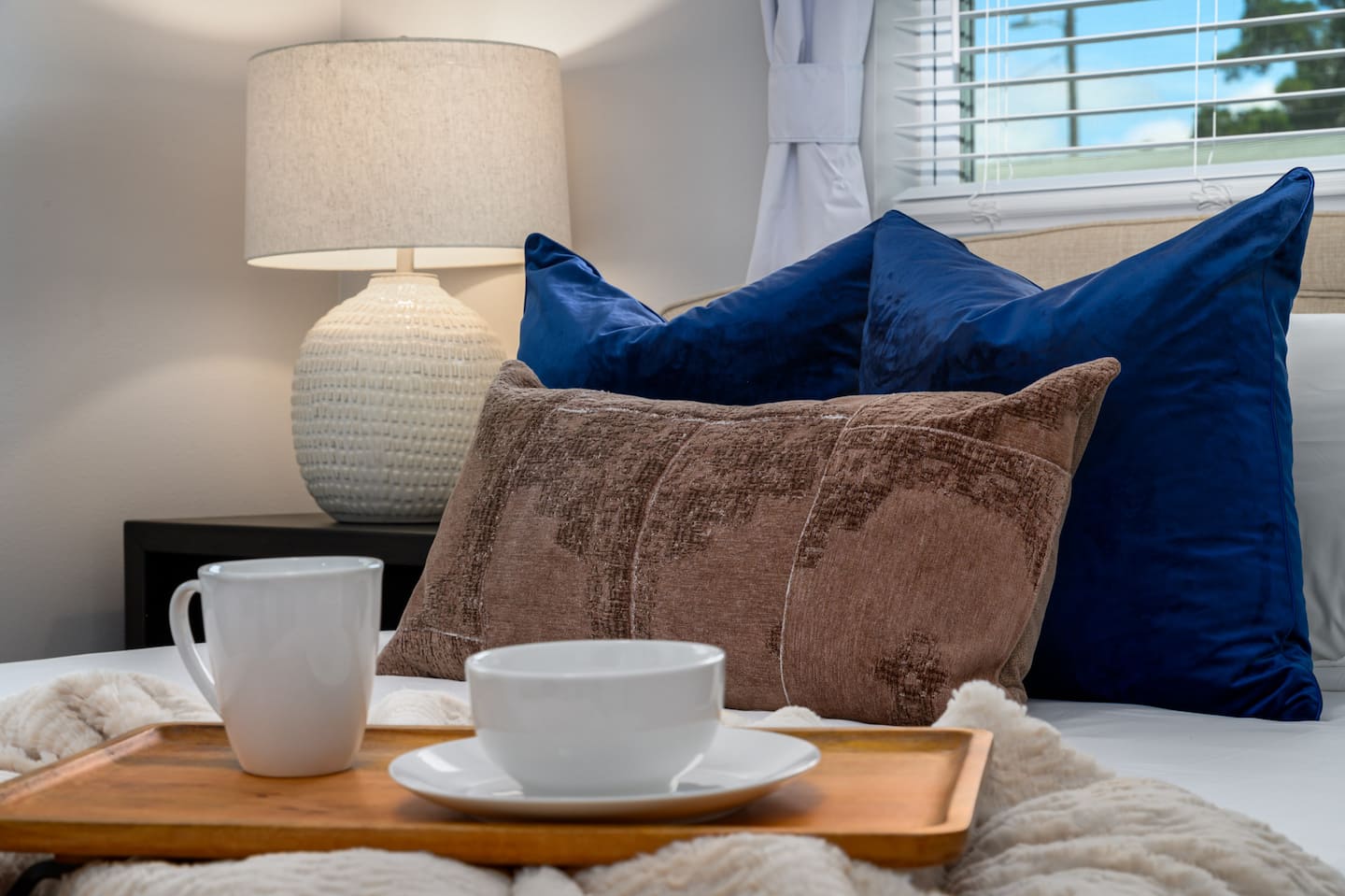 Experience comfort in our three bedrooms, accommodating up to six guests. The master bedroom features a luxurious king-sized bed, a spacious closet, and a private bathroom for added convenience. Meanwhile, the second bedroom, enclosed by a beautiful sliding barn door, offers a twin bed, ample storage space, access to the patio and pool, and a private workspace equipped with high-speed wifi. Bedroom three boasts a luxury full-sized bed and ample storage.