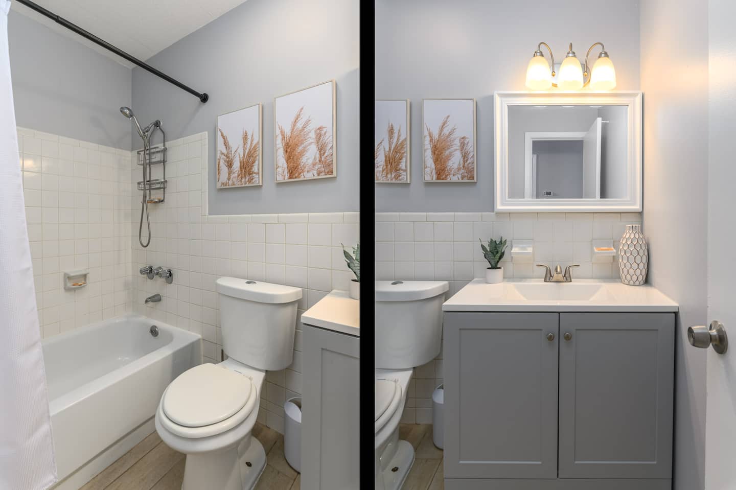 Refresh and rejuvenate in our bathrooms stocked with toiletries like shampoo, conditioner, and body wash. The shared bathroom offers a toilet, sink, mirror, and tub/shower combo, while the private bathroom in the second bedroom boasts a toilet, sink, mirror, and walk-in shower.