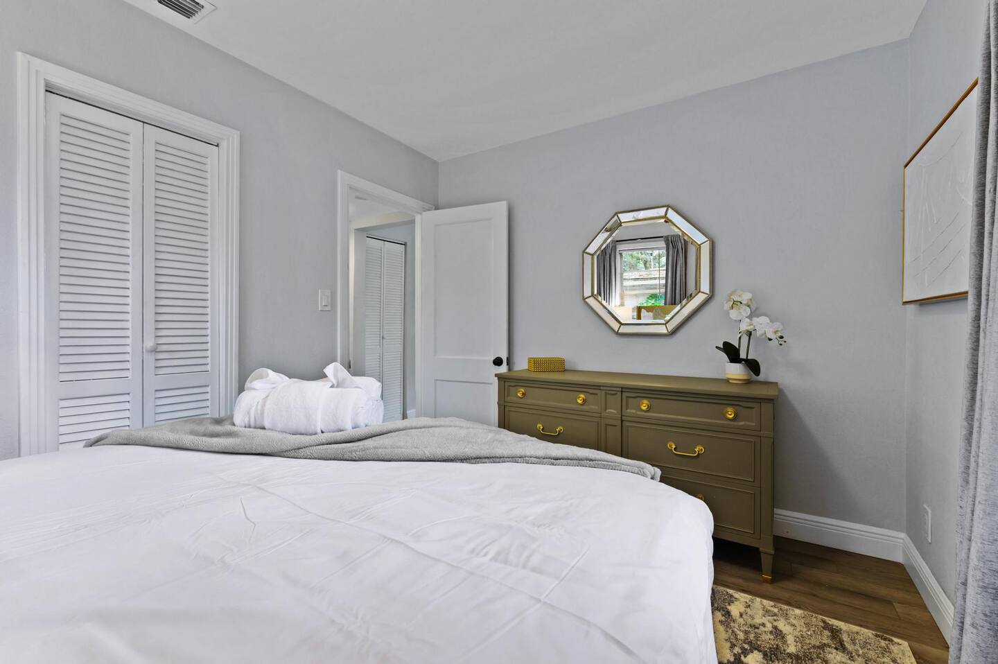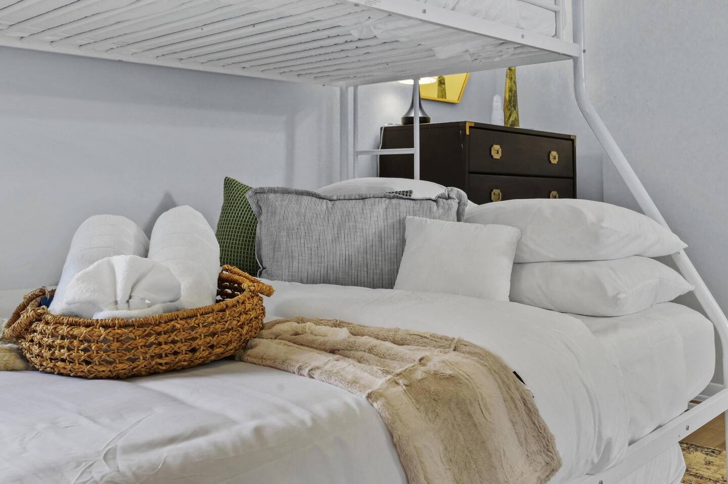 The master bedroom has a luxurious queen-sized bed, closet, and dresser space, all with direct access to the bathroom. Meanwhile, the second bedroom offers a bunk bed featuring a full-sized bottom and a twin-sized top, complete with ample closet and dresser space. *there’s also an additional single trundle in the bunk room to host an extra guest if needed.