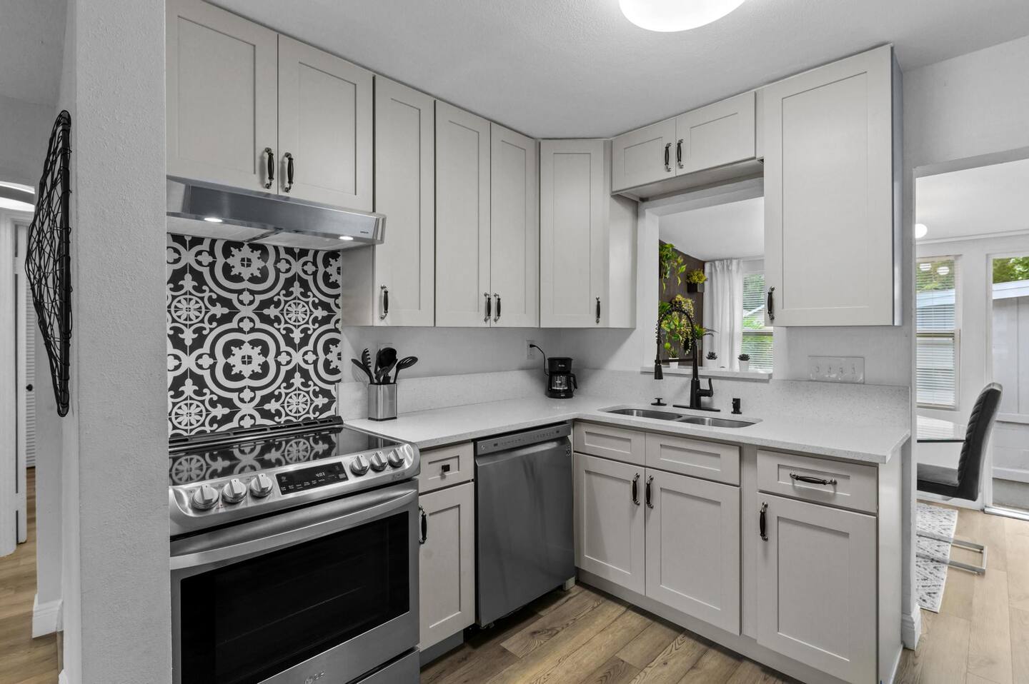 Our kitchen is equipped with stainless steel appliances, a dishwasher for easy cleanup, and all the essentials. From the fridge, freezer, stove, and oven to the microwave, toaster, coffee maker, pots, pans, and complete dining sets, we've got you covered.