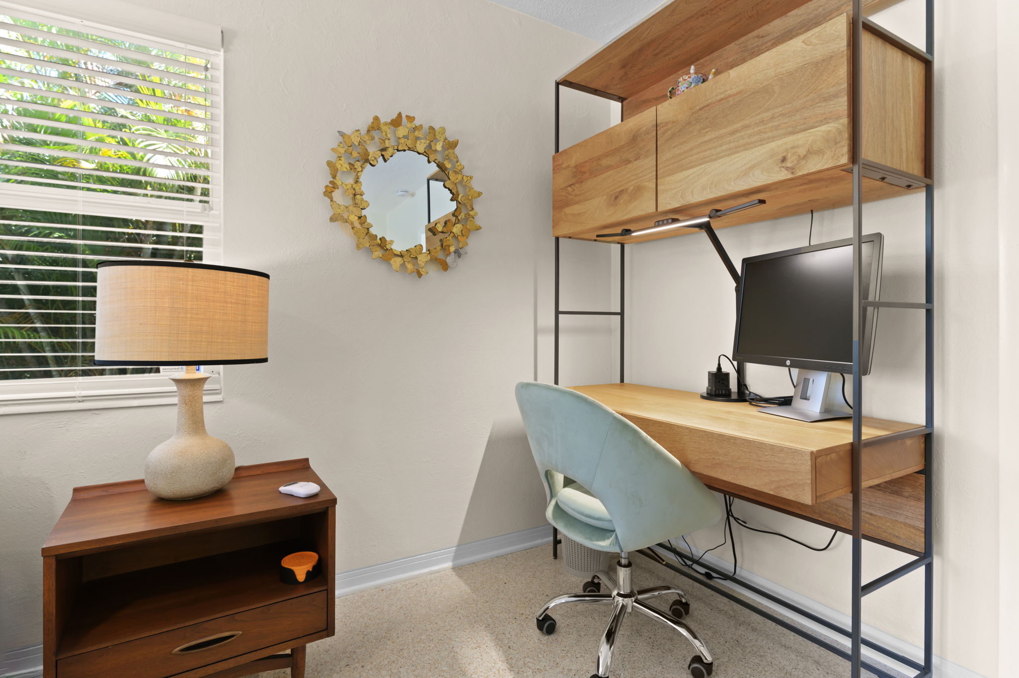 This home boasts not one, but two inviting living rooms, each offering its own distinct atmosphere and purpose. The first, a refined yet cozy formal sitting room, provides the ideal setting to unwind after a day of exploration. Tucked away in one corner is a designated workspace, complete with a desk, monitor, and even a printer, offering the convenience of remote work whenever necessary.