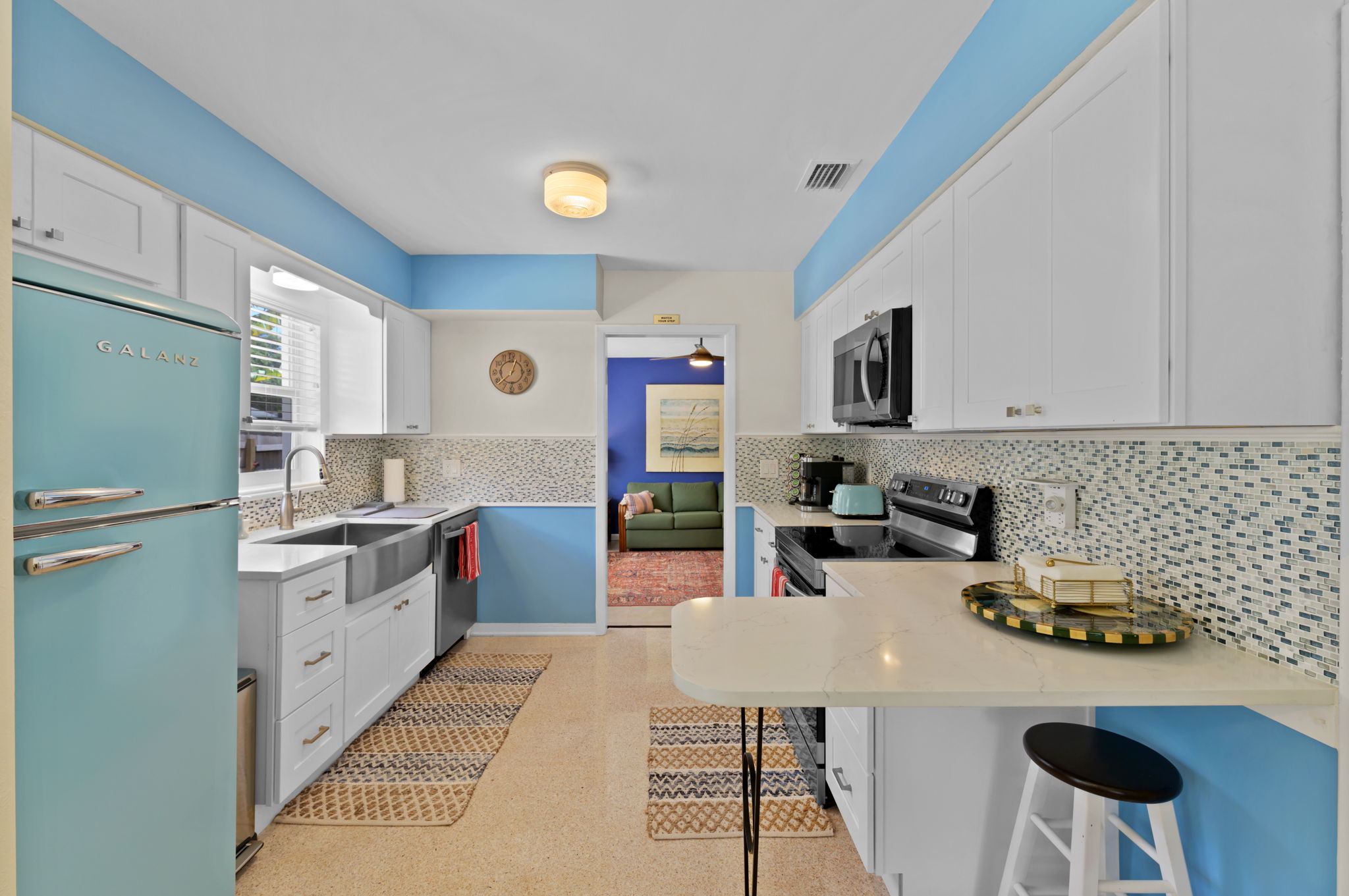 ✦ ‘60s-style kitchen with classic features, stainless steel appliances, dishwasher, and all essentials for cooking.