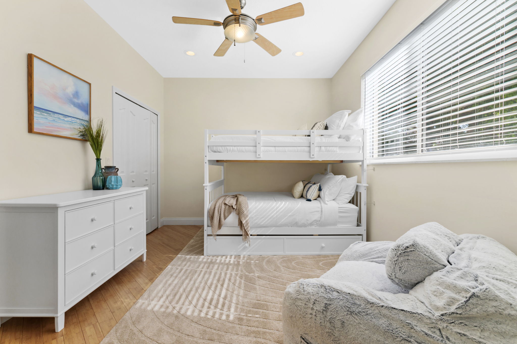 ✦ 4 bedrooms with 6 beds total; 2 kings, 1 queen, 2 full (bunk-bed), 1 single trundle (sleeps 11)