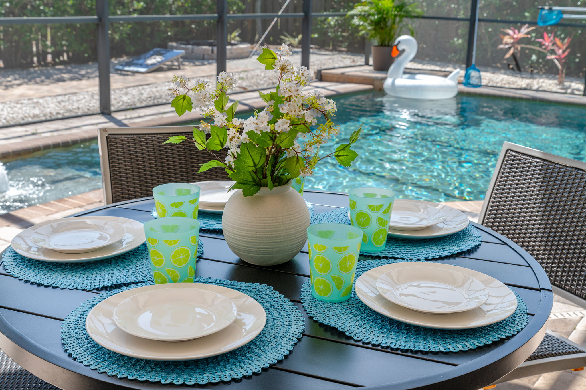 "Loved the back patio area for amazing outdoor living for coffee, meals, games, and family fun in the pool! Also enjoyed the jacuzzi tub in the master suite! Luz really thought of all we needed for a great time away! Thanks so much for sharing this beautiful home!" - Tammy